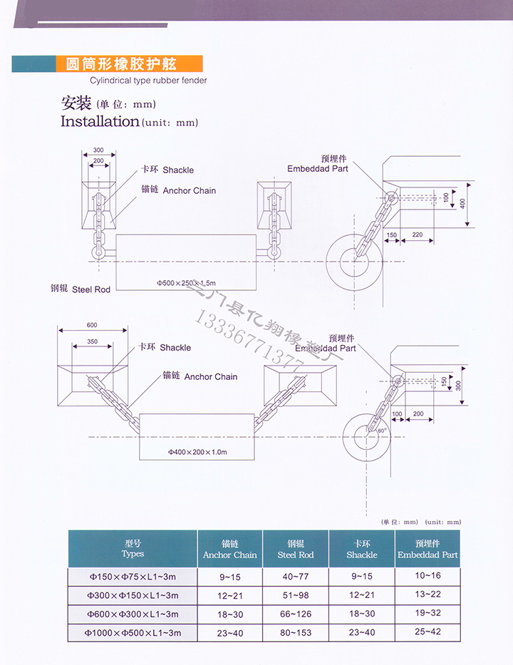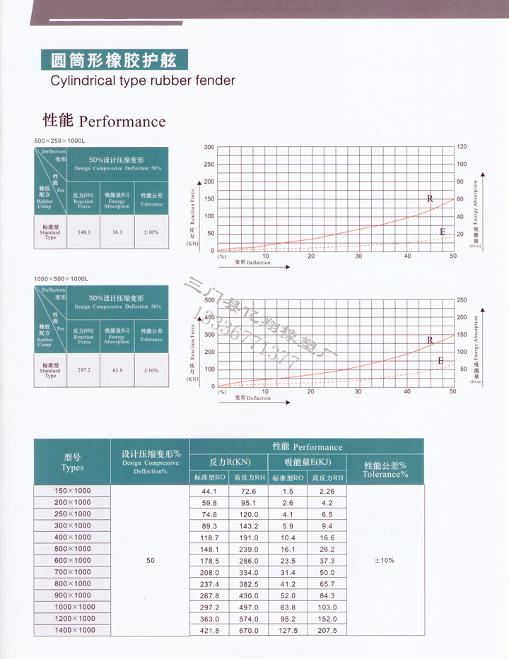 1) 圆筒型橡胶护舷: