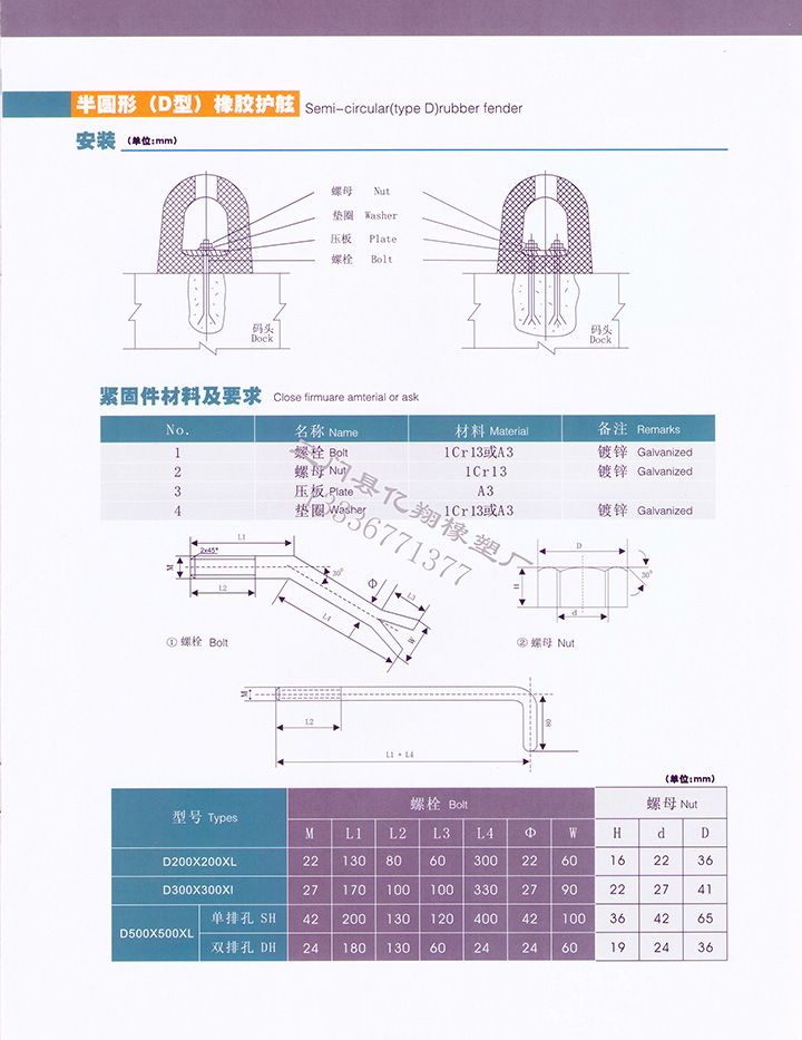 2)半圆型(D型)橡胶护舷:
