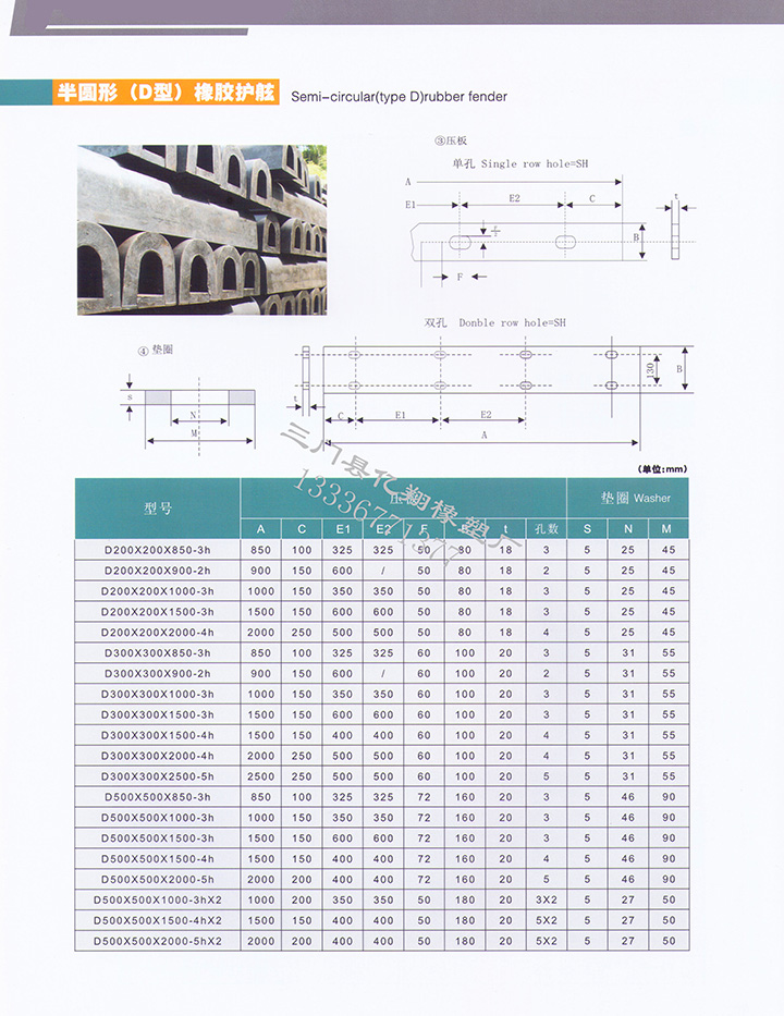 2)半圆型(D型)橡胶护舷: